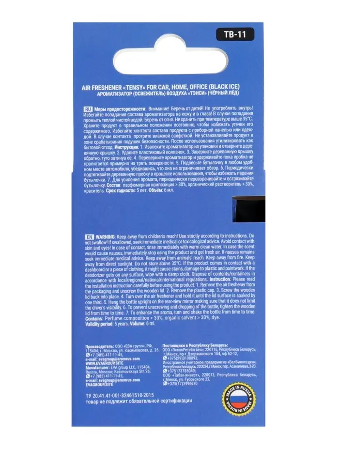 Ароматизатор в машину Tensy, чёрный лед, бутылочка, 6 мл, ТВ-11