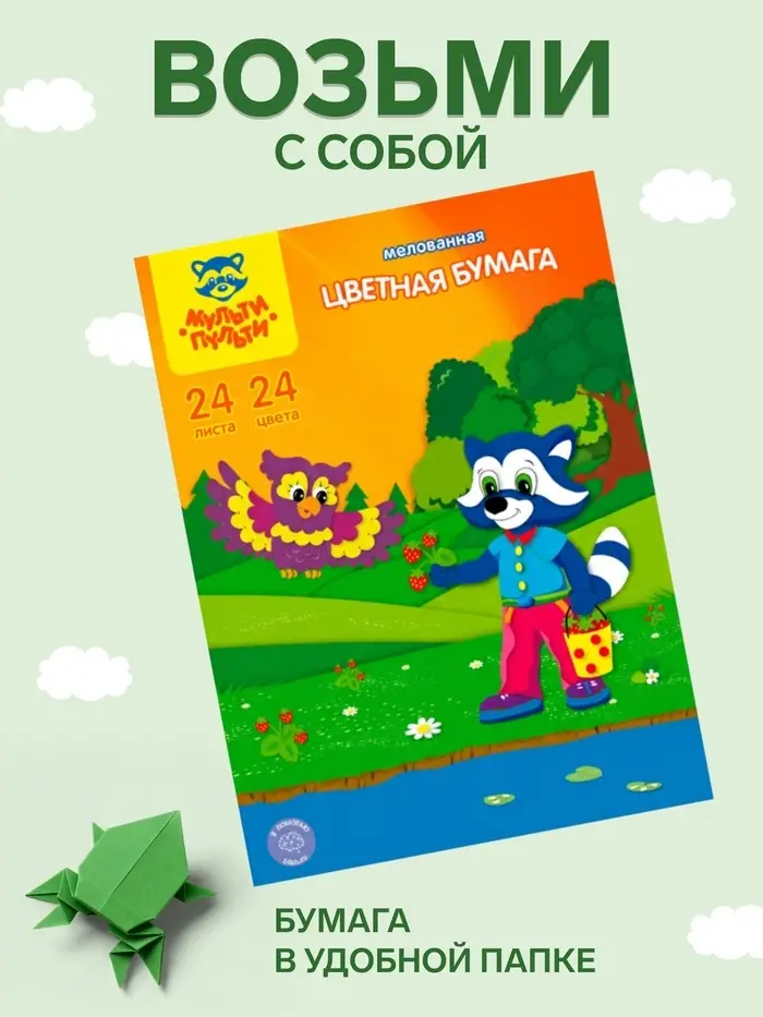 Цветная бумага А4 «Мульти-Пульти. Чебурашка», 24 листа, 24 цвета, мелованная, на скобе