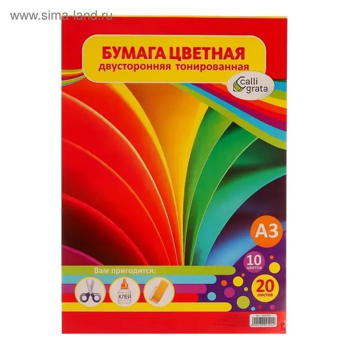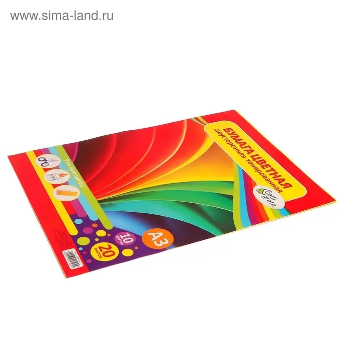 Бумага цветная двусторонняя А3, 20 листов, 10 цветов, тонированная