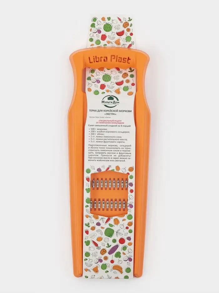 Легко и быстро приготовьте идеальную корейскую морковь с нашей удобной тёркой с широкой ручкой. Этот яркий оранжевый инструмент, разработанный специально для нарезки овощей соломкой, станет незаменимым помощником на вашей кухне.