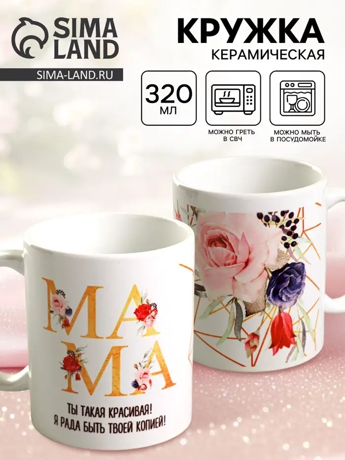Керамическая кружка «Мама красивая» — это качественный и удобный аксессуар для подачи различных напитков.