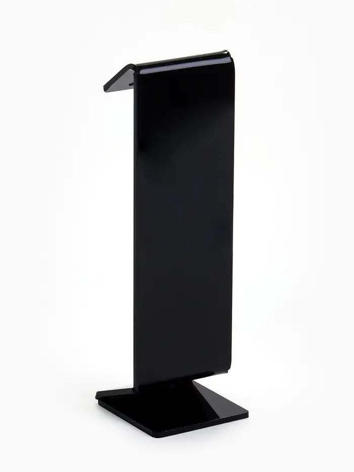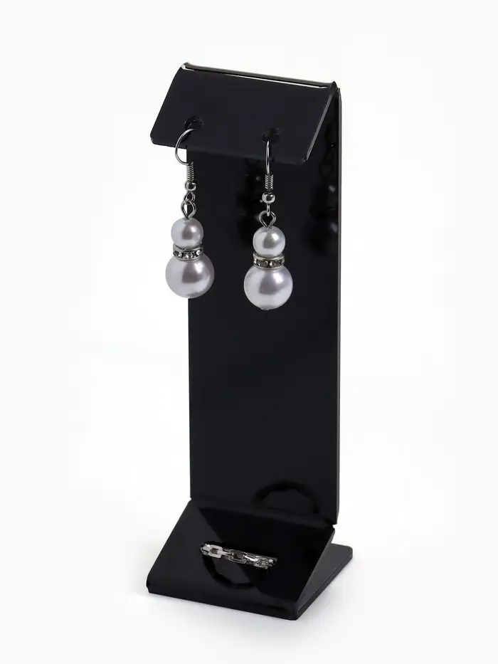Элегантная подставка, выполненная из чёрного оргстекла, предназначена для демонстрации серёжек и колец. Компактные размеры (4×4×13 см) делают её удобной для размещения на витринах и в домашних условиях. Изделие поставляется в защитной плёнке, что обеспечивает сохранность при транспортировке и хранении. Чёрный цвет подставки подчёркивает изысканный стиль ювелирных украшений, привлекая внимание покупателей. Изделие из оргстекла (листовой акрил). Благодаря использованию 100% акрила, подставка имеет высочайший блеск и шикарный внешний вид.