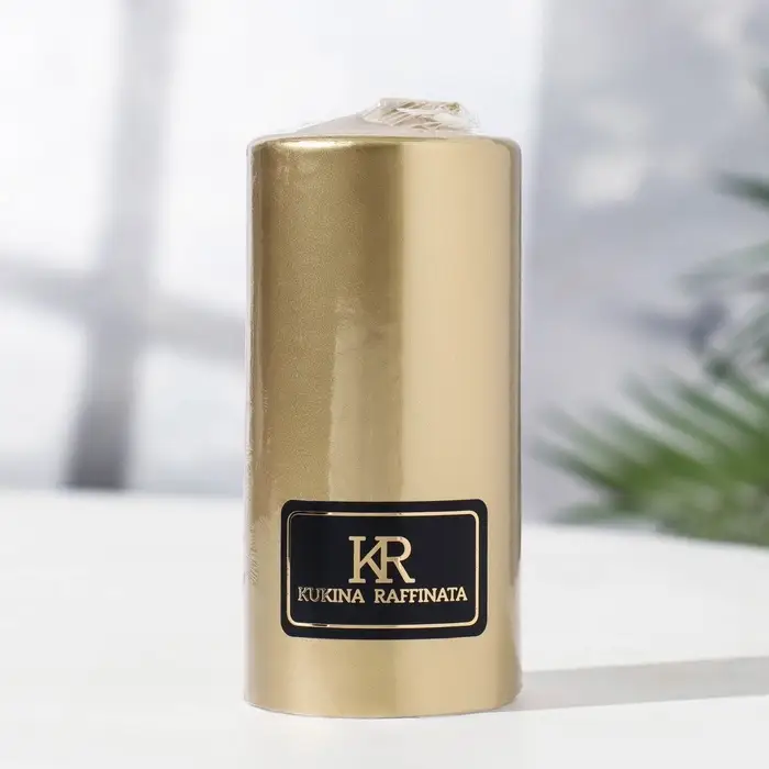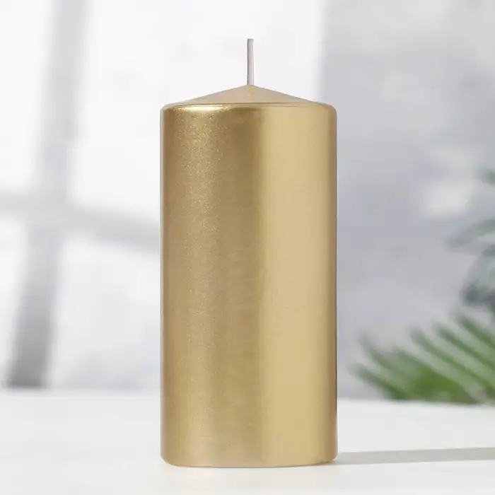 Свеча - цилиндр парафиновая, лакированная, золотой металлик, 5.6×12 см