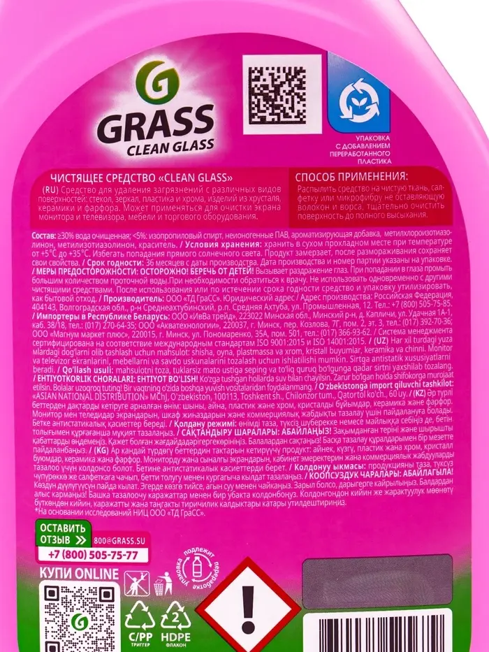 Чистящее средство для различных поверхностей. Обеспечивает чистоту и блеск стеклянных, зеркальных и пластиковых поверхностей как в доме, так и автомобиле. Предотвращает запотевание стекл и образование конденсата. Быстро и эффективно удаляет любое загрязнение (грязь, жир, отпечатки пальцев). Легко смывается, не оставляет разводов.