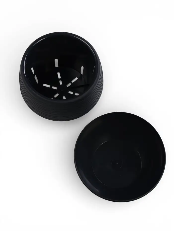 Горшок для цветов «Япония», 2 л, d=18 см, h=15 см, пластиковый, с поддоном, графитовый