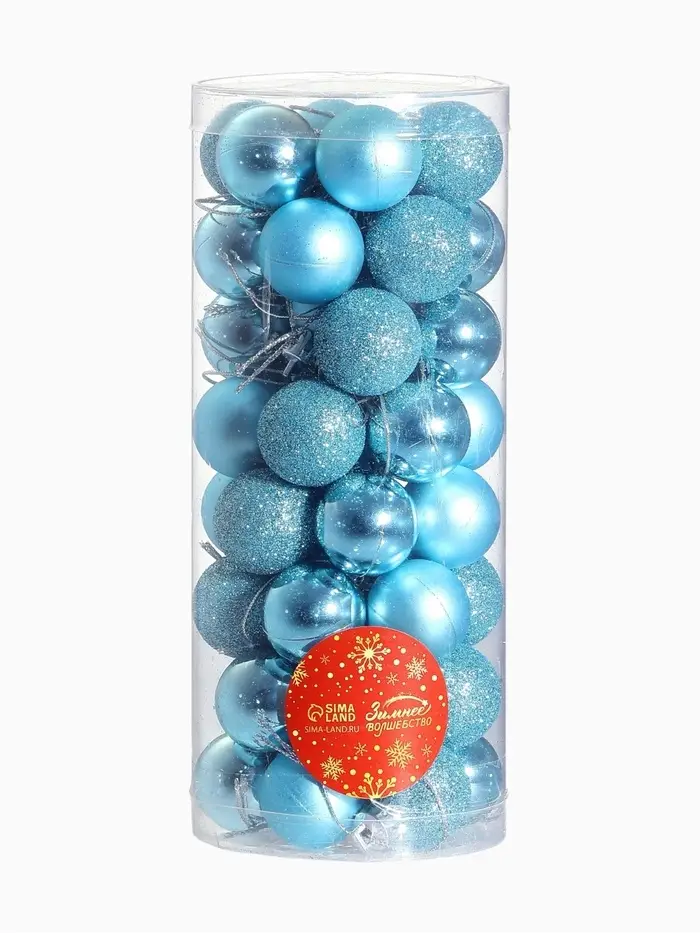 - Комплект из 48 компактных шаров насыщенного голубого цвета.