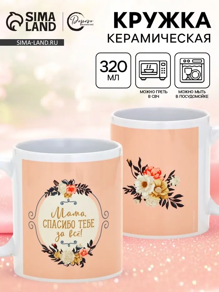 Керамическая кружка «Мама, спасибо тебе за всё» — это качественный и удобный аксессуар для подачи различных напитков.