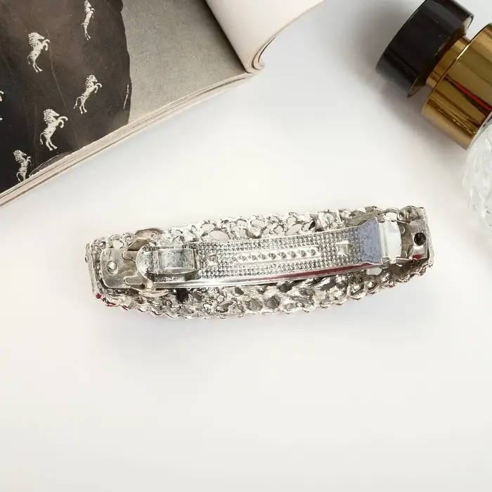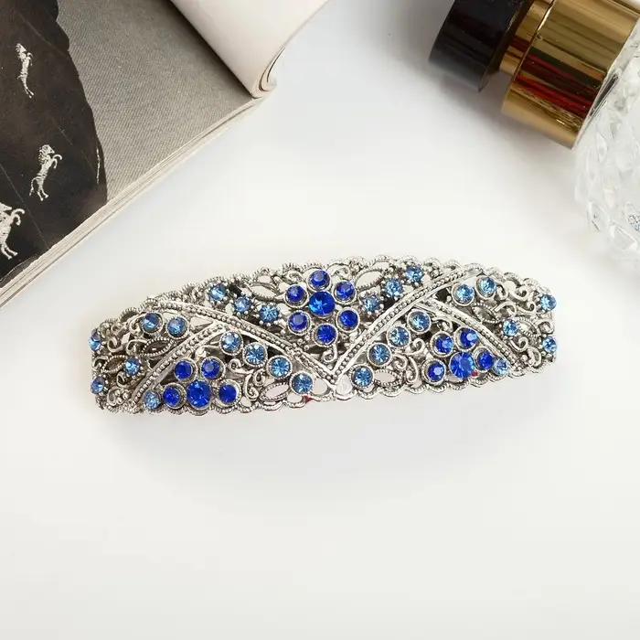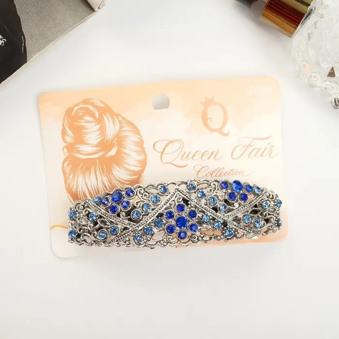 - Прочность и долговечность: Металлическая основа обеспечивает заколке прочность, а стеклянный декор сохраняет яркость цвета надолго. Аксессуар не теряет форму и не ломается даже при частом использовании.