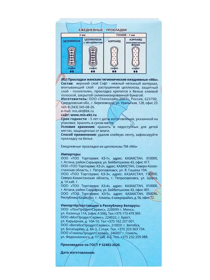 Ежедневные прокладки из целлюлозы 2 мм MIS это мой индивидуальный секрет 80 шт.