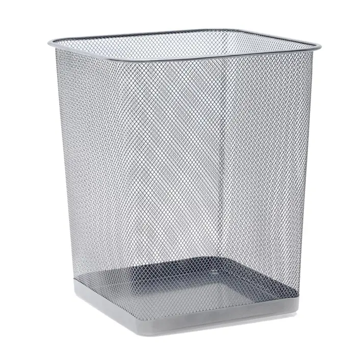 Корзина для бумаг, сетка металлическая, квадратная, серая