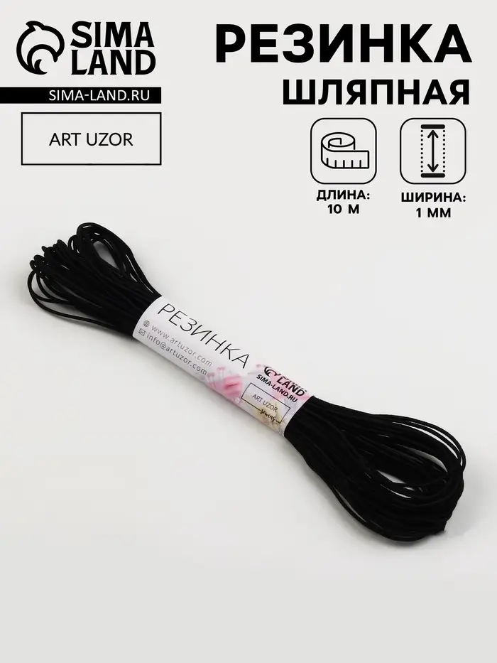 Резинка шляпная, 1 мм, 10±0.5 м, чёрная
