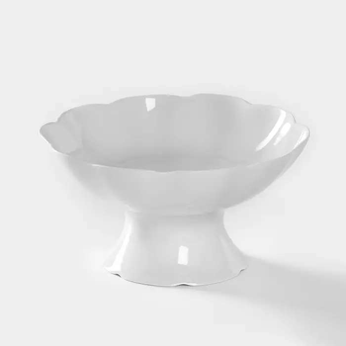 Конфетница с фигурными краями добавляет лёгкость сервировке сладкого стола. Рельефная текстура фарфора делает поверхность выразительной на свету. Объём 300 мл подходит для небольших порций конфет, зефира или орехов. Вертикальная форма с высотой 15,2 см экономит место и выглядит аккуратно. Посуда выдерживает частое мытьё в посудомоечной машине. Выбор для тех, кто ищет фарфоровые конфетницы без рисунка или белую посуду с рельефом и фигурными краями.