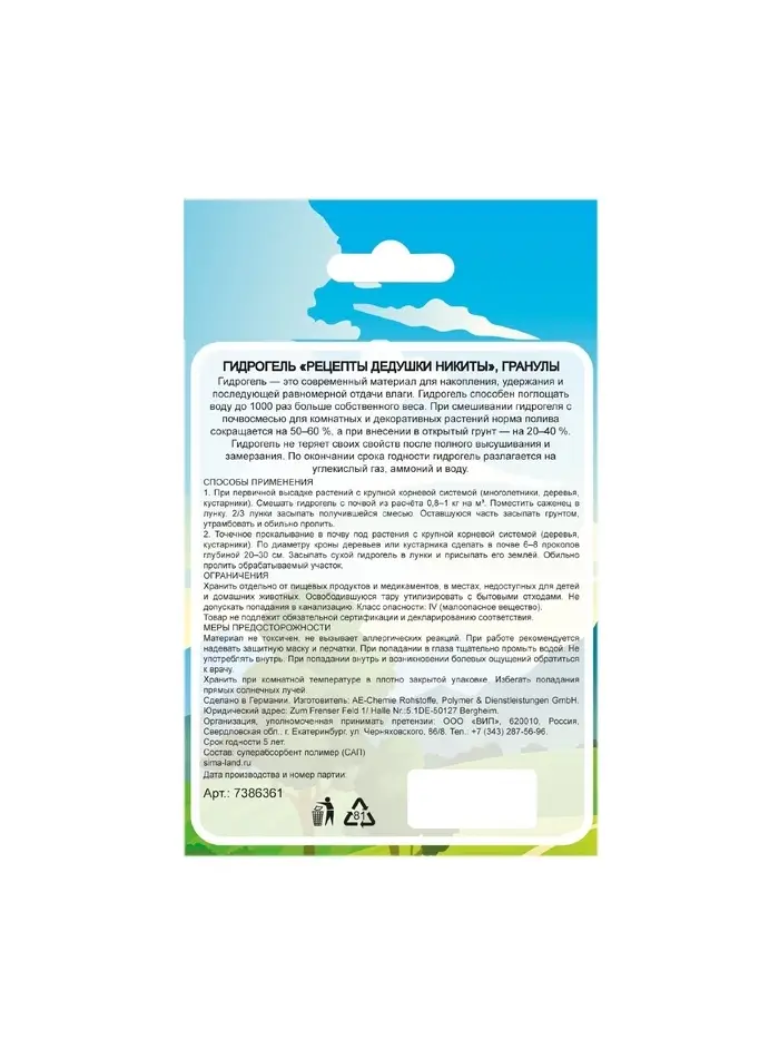 Гидрогель «Рецепты Дедушки Никиты», гранула, 50 г