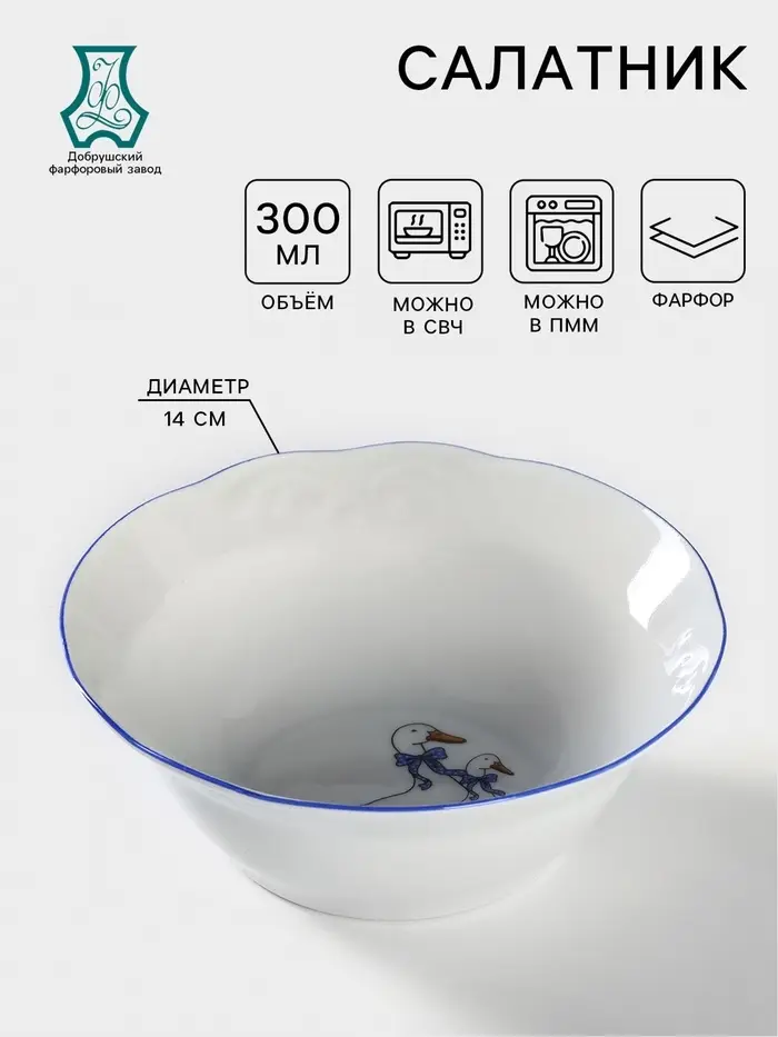 Салатник Добрушский завод «Гуси», 300 мл, d=14 см, фарфор, белый