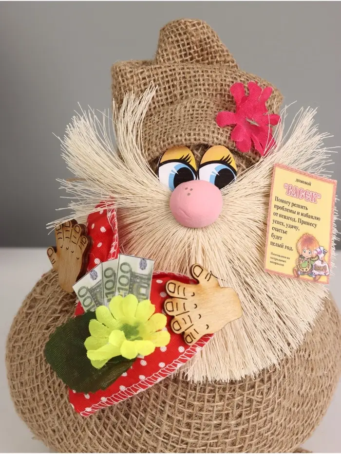 Каждый домовёнок уникален и имеет своё значение и смысл. Изготовлены домовые и обереги из природных материалов и по старинным технологиям. Для их создания используют такие материалы как, древесина, мешковина, сизаль, цветы, семечки и другие декоративные элементы. Все эти материалы в особом сочетании приносят успех, достаток, любовь, благополучие, как в домашнее, так и офисное помещение.