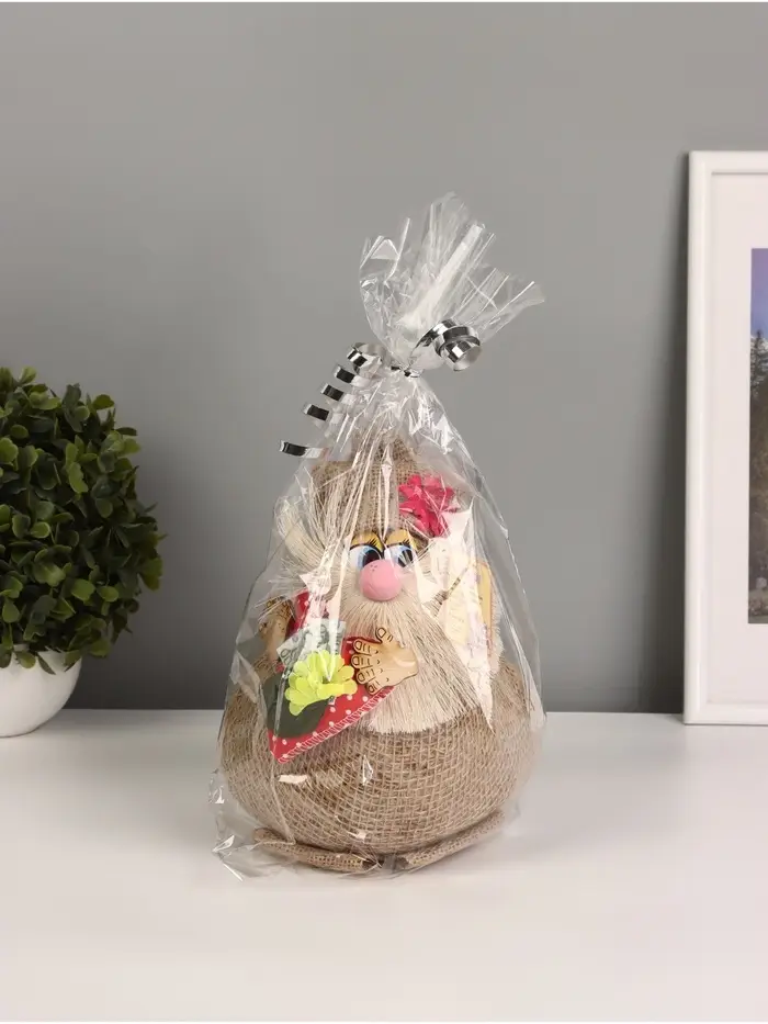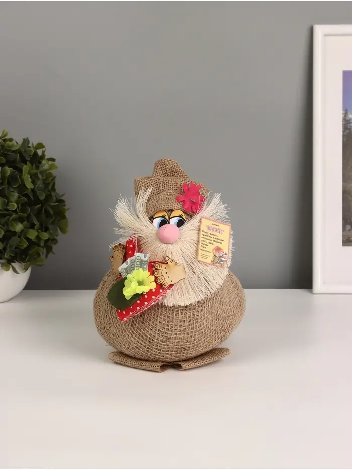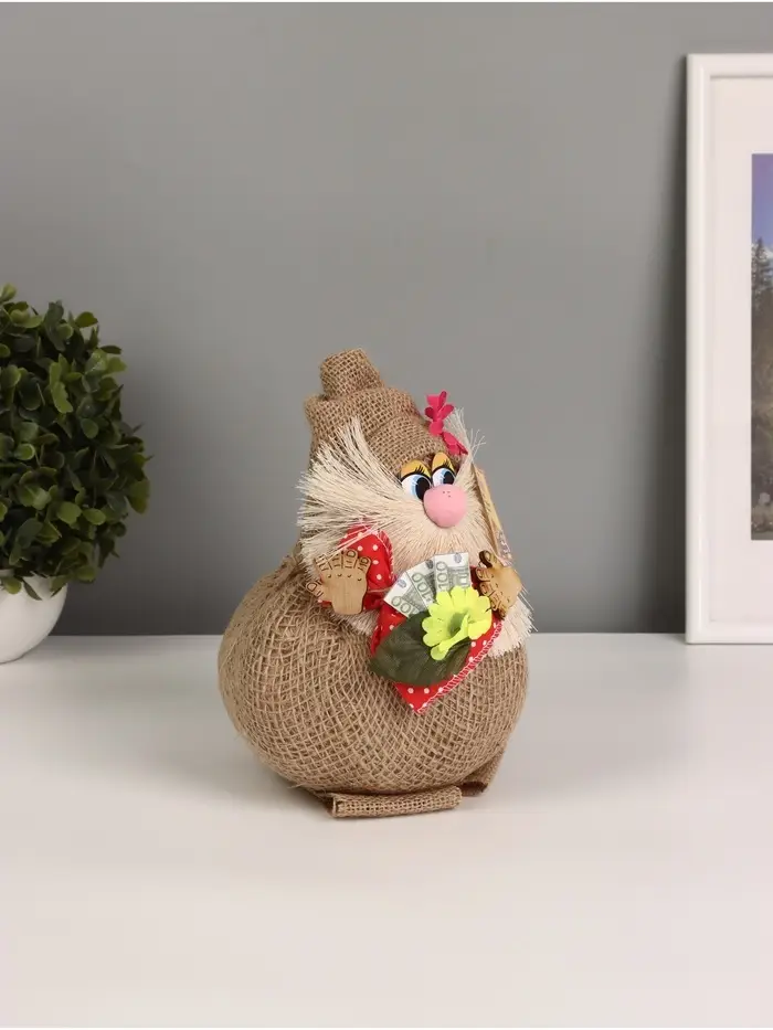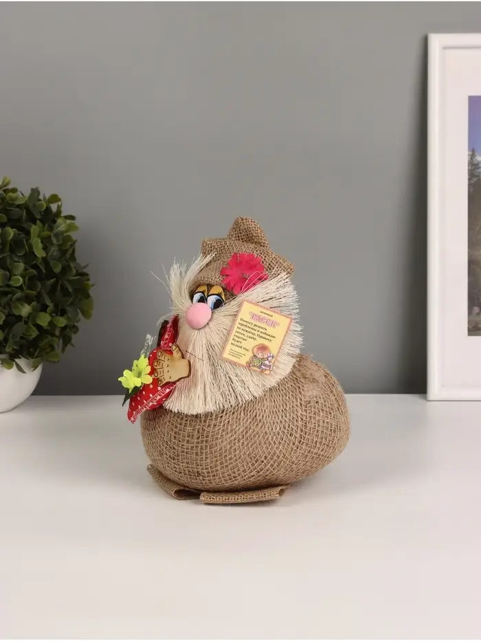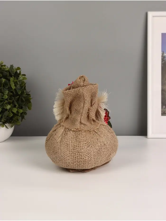 Фигурка - оберег «Домовой. Васек на мешковине, с красным мешком», 26×21×21 см