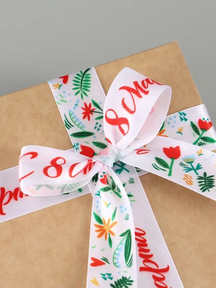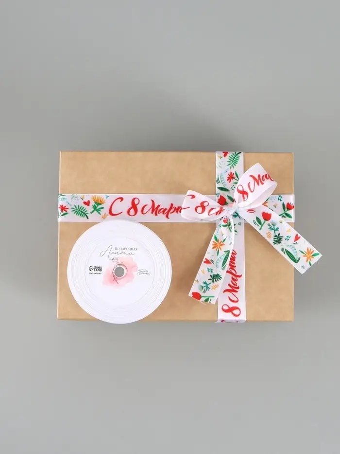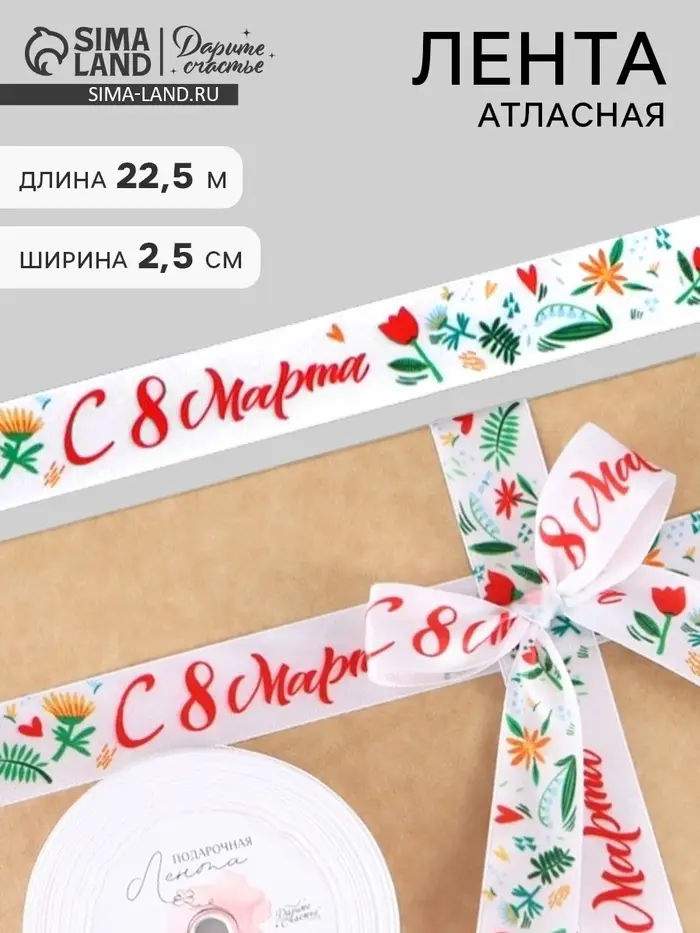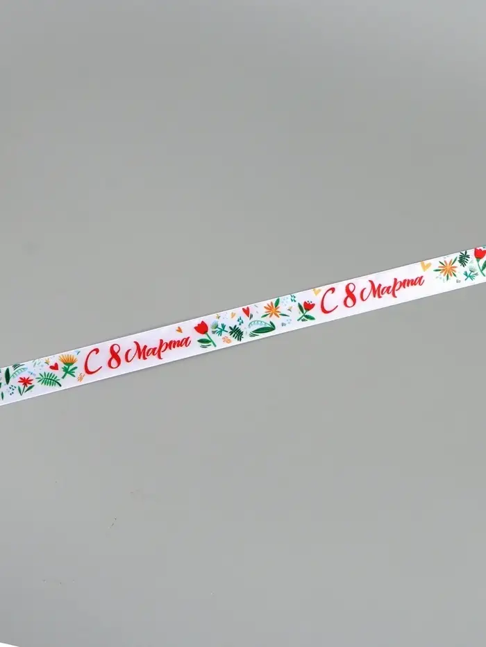 Лента атласная «С 8 Марта», 2.5 см × 22.5 (± 1) м, разноцветная