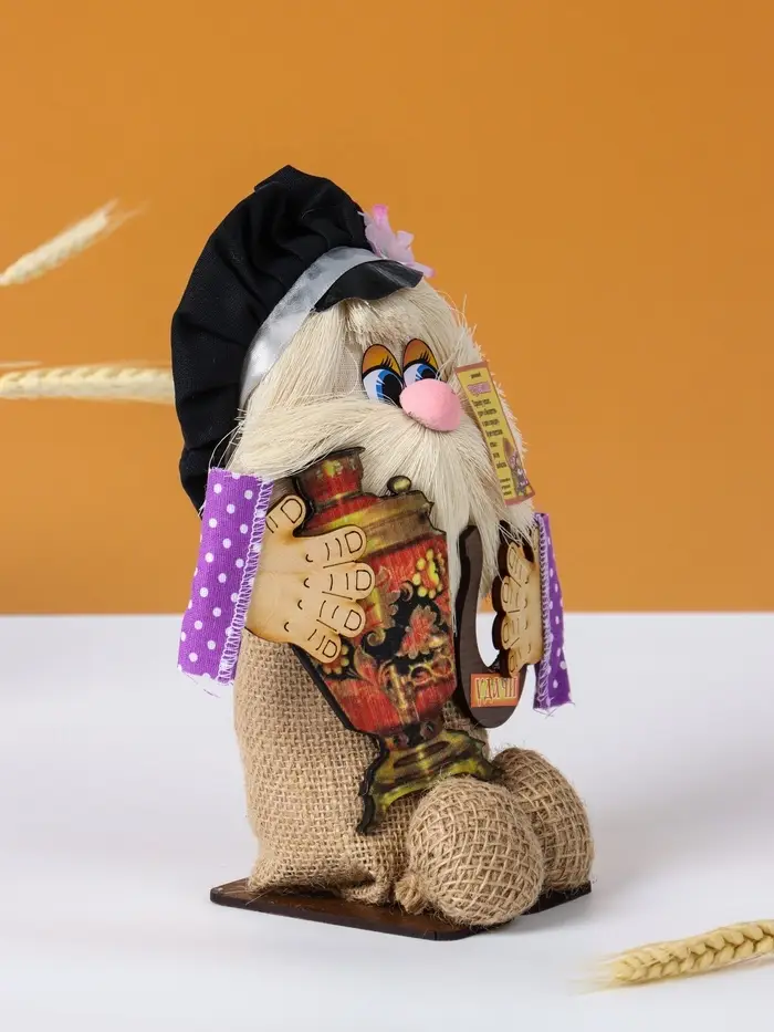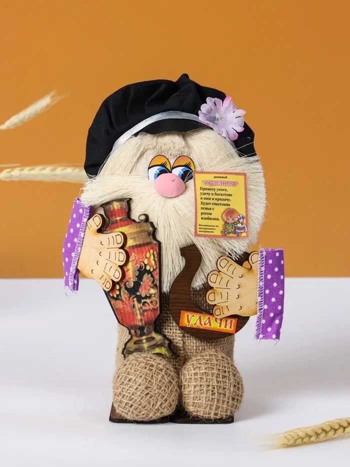 Фигурка - оберег «Домовой. Кузя в кепке, с самоваром и подковой», 26×15×12 см, МИКС
