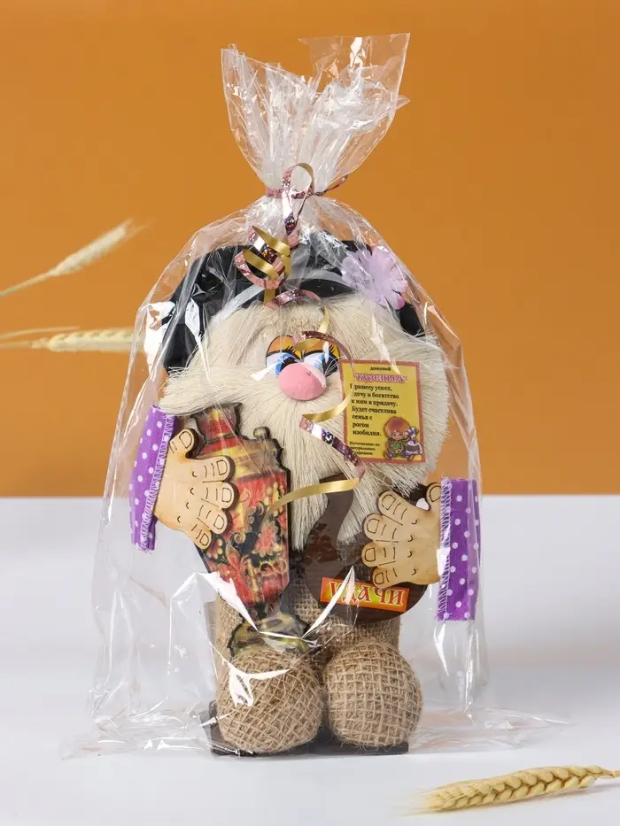 Фигурка - оберег «Домовой. Васек на мешковине, с караваем», 24×18×18 см