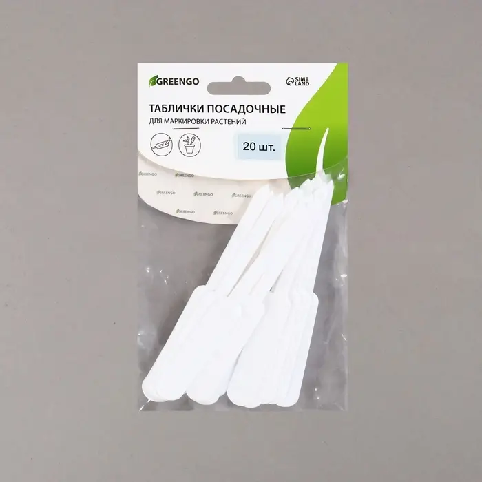 Таблички садовые, 13 см, набор 20 шт., пластик, белые, Greengo