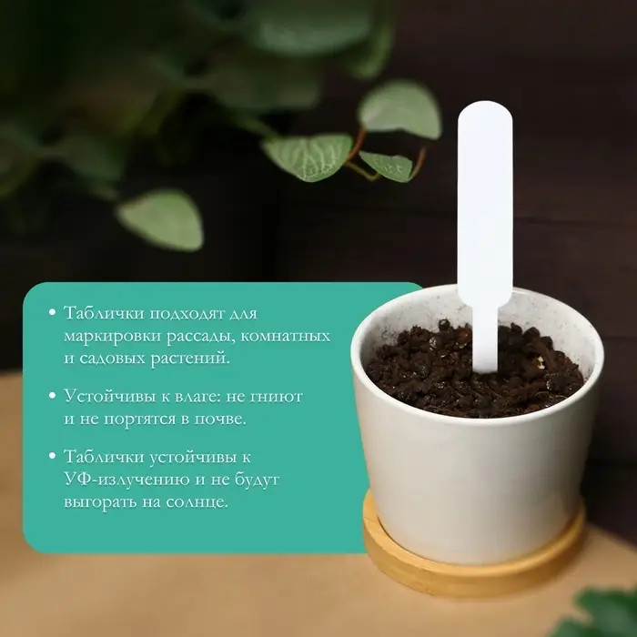 - Практичность в уходе: пластиковые таблички легко очищаются от грязи и пыли, сохраняя эстетичный вид на протяжении всего сезона. Вы можете менять нанесенные надписи в зависимости от ежегодных изменений в посадках.