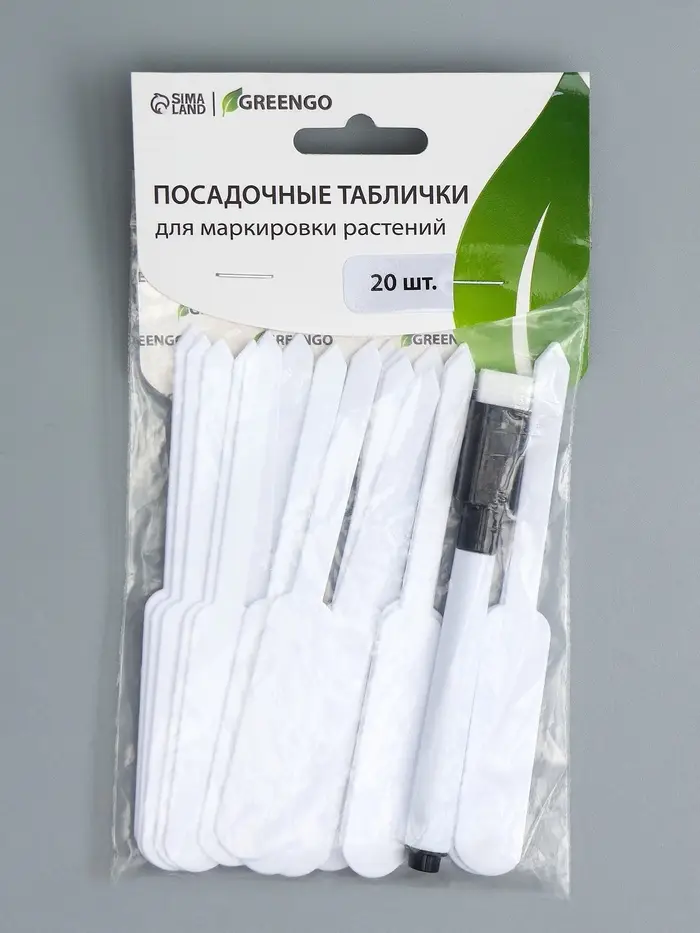 Бирки садовые, для маркировки растений, 10 см, набор 20 шт., маркер, пластик, белые, Greengo