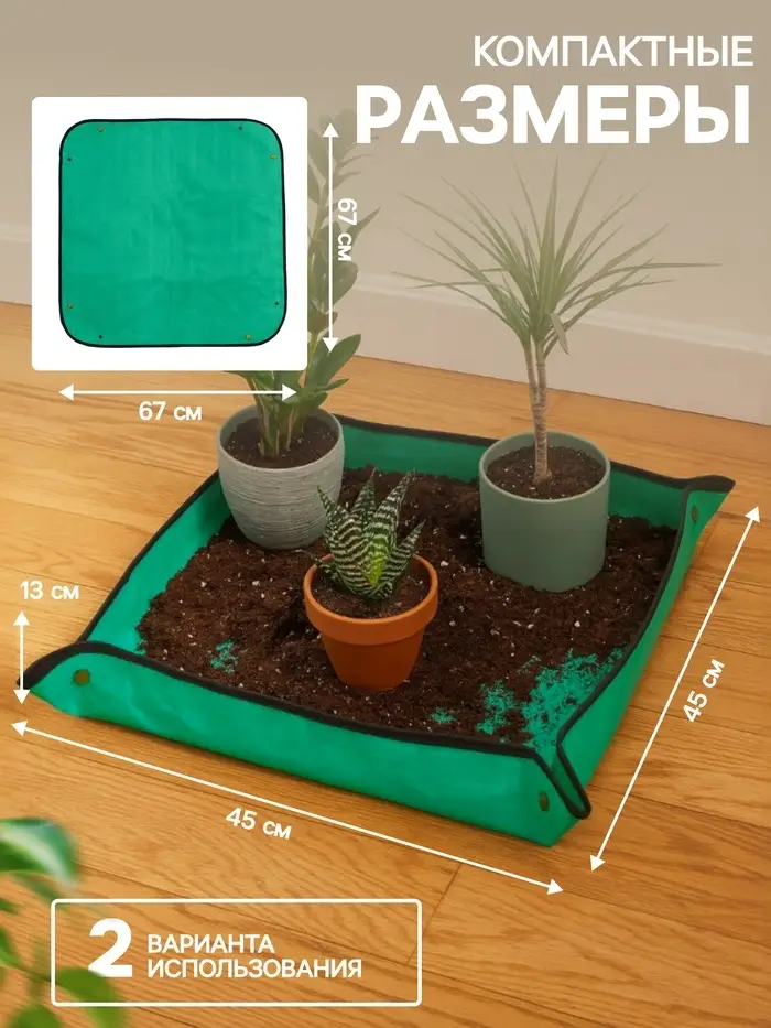 Коврик из пластика пригодится садоводам и любителям комнатных растений. Он поможет сохранить в чистоте поверхности во время пересадки цветов и ухода за ними.