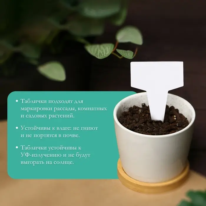 - Компактный размер: высота каждой таблички составляет всего 7 см, что позволяет аккуратно разместить их без вреда для визуального восприятия вашего сада. Они подойдут как для больших, так и для маленьких клумб и горшков.