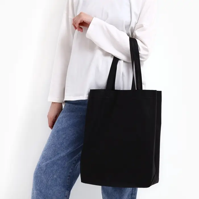 Шопер, 42×10×30 см, однотонный, без подклада, цвет чёрный