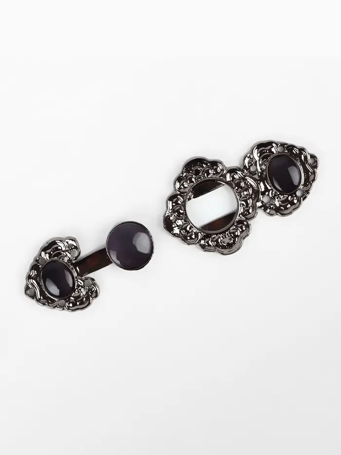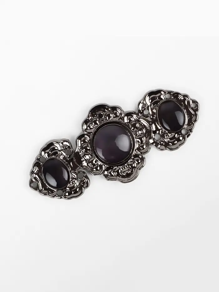 Эта декоративная застёжка — финальный штрих, превращающий вещь в законченное произведение. Её лаконичный чёрный силуэт и сдержанный блеск добавляют акцент, где это необходимо, не перетягивая внимание на себя. Идеальное решение для тех, кто ценит детали.
