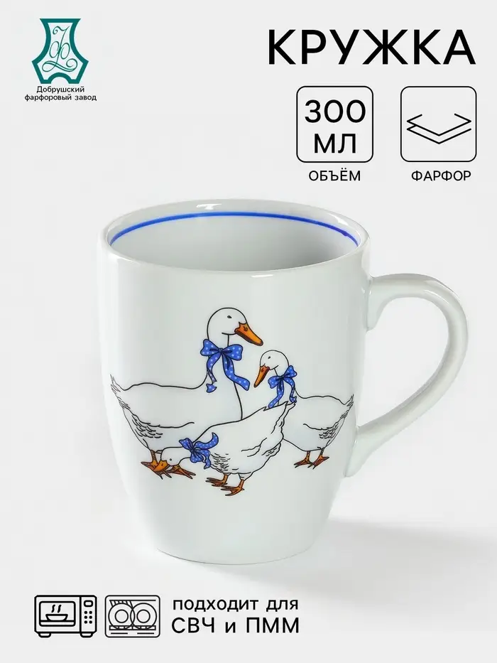 Кружка Добрушский завод «Гуси», 300 мл, фарфор, белая