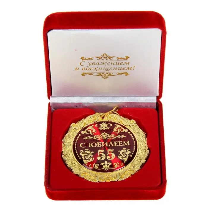 Медаль юбилейная в бархатной коробке «С юбилеем 55 лет», d=7 см