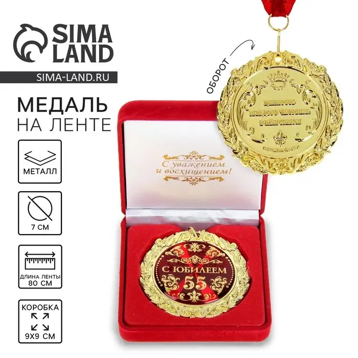 Создана формула идеального поздравления: классическая форма и праздничное содержание. Именно такой и является медаль юбилейная в бархатной коробке «С юбилеем 55 лет», d=7 см. Это отличная награда для самых достойных представителей своего времени. Эксклюзивный сувенир станет достойным украшением вечера и поможет создать незабываемую церемонию поздравления.