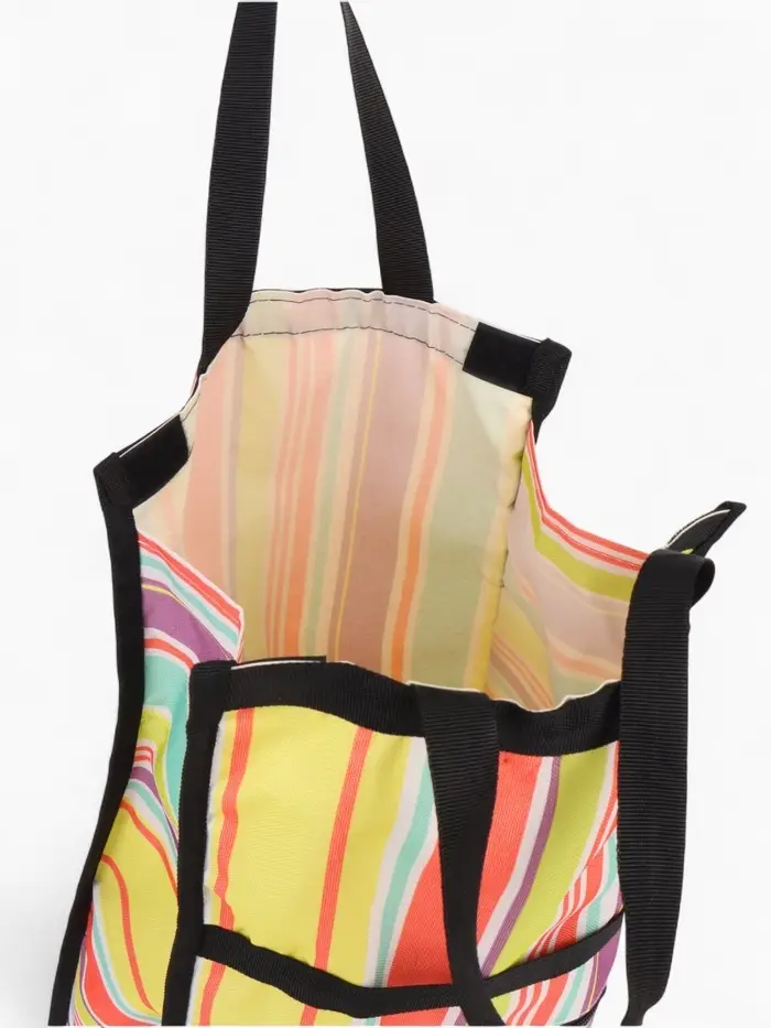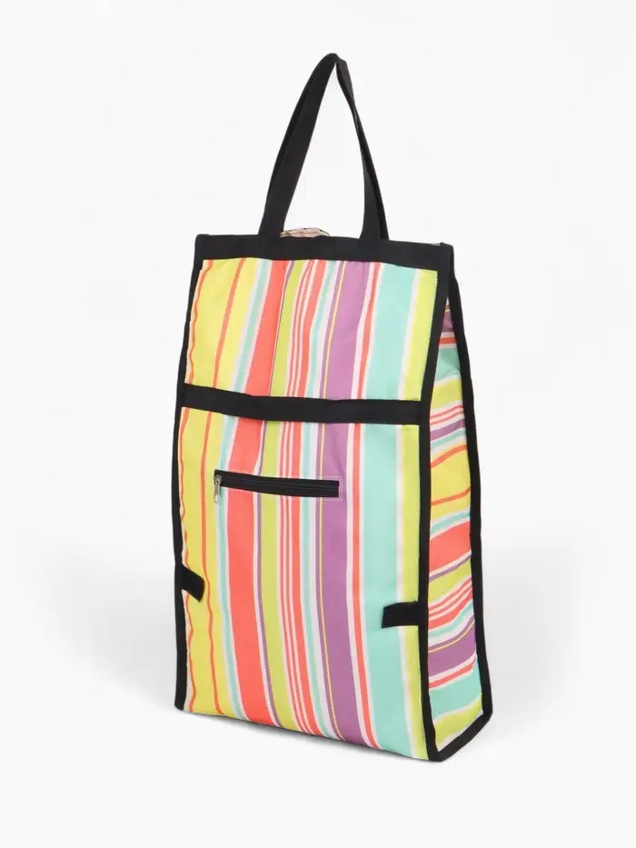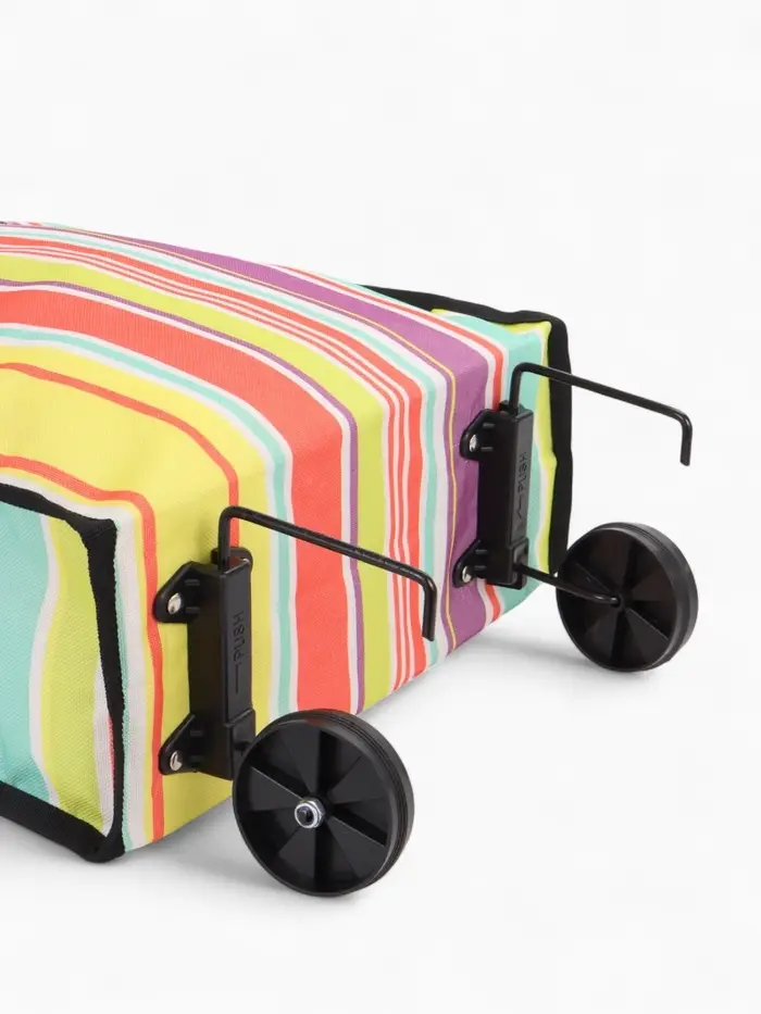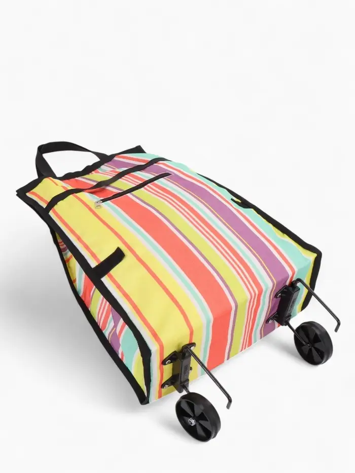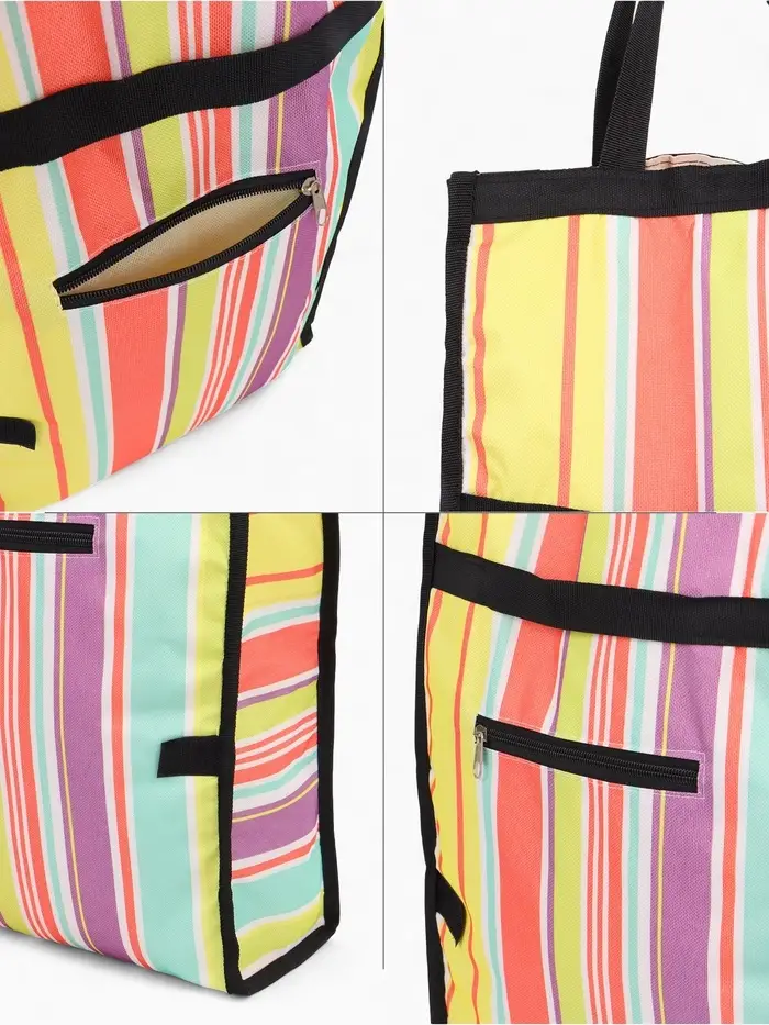 Яркий полосатый дизайн делает обычный поход за покупками приятнее. Тележка вмещает продукты с рынка или хозяйственные товары из магазина. После использования она компактно складывается — вы убираете её в шкаф или кладовку до следующей прогулки.
