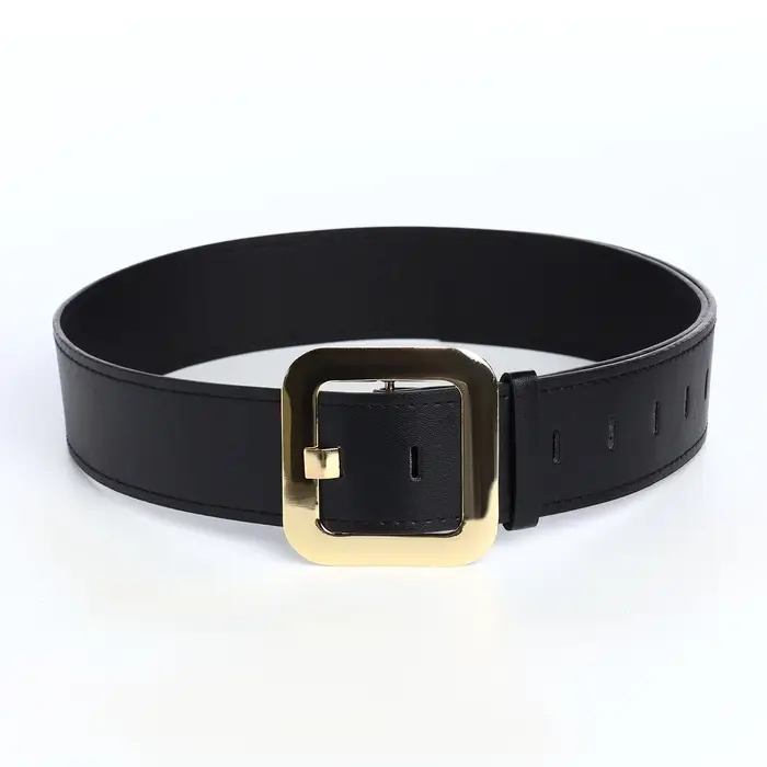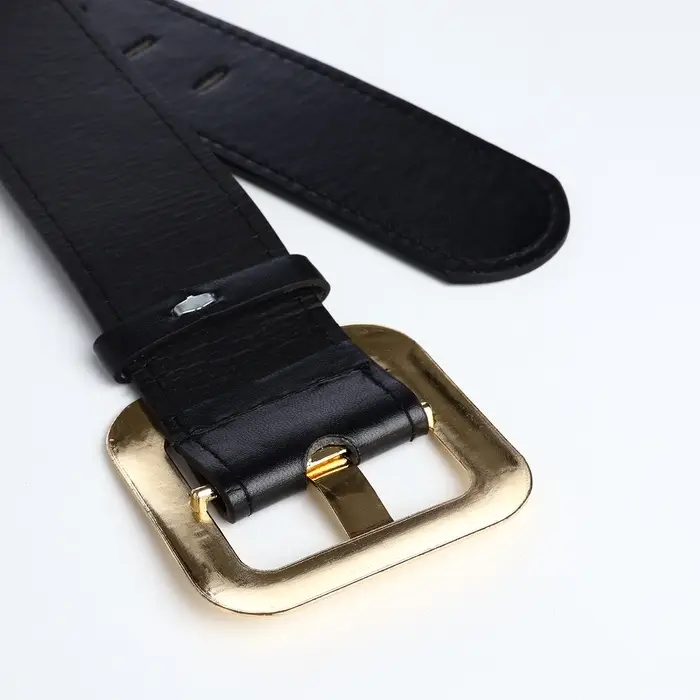 Ремень женский, 110×4.8 см, квадратная пряжка, золотистая, чёрный