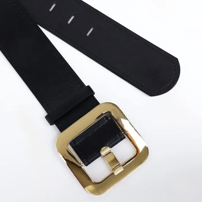 - Квадратная золотистая пряжка становится стильным фокусом, сохраняя простоту фиксации
