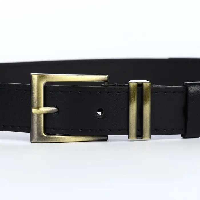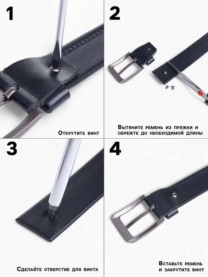 - Цвет ремня — глубокий чёрный, сочетается с любой базой гардероба.
