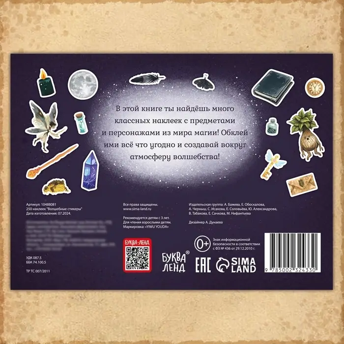 - 250 уникальных наклеек с любимыми персонажами и элементами из мира магии.