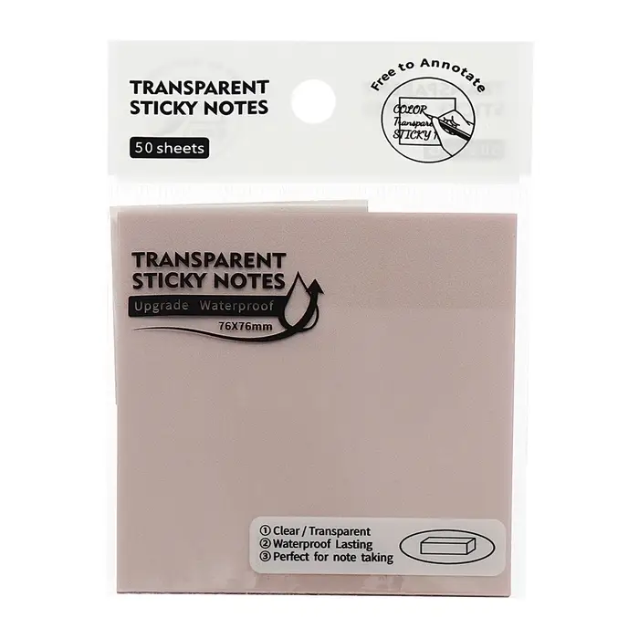 Блок с липким краем 76×76 мм, 50 листов, персиковый перламутр, прозрачный, пластик