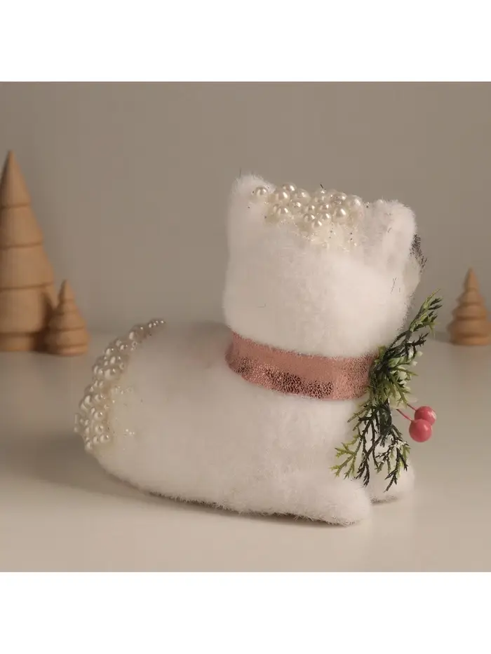 Эта белая лиса в бусинах станет очаровательным дополнением домашнего уюта. Её образ, сочетающий дикую грацию и рукотворное тепло, создаёт атмосферу зимней сказки и спокойствия, идеальную для новогоднего настроения и не только.