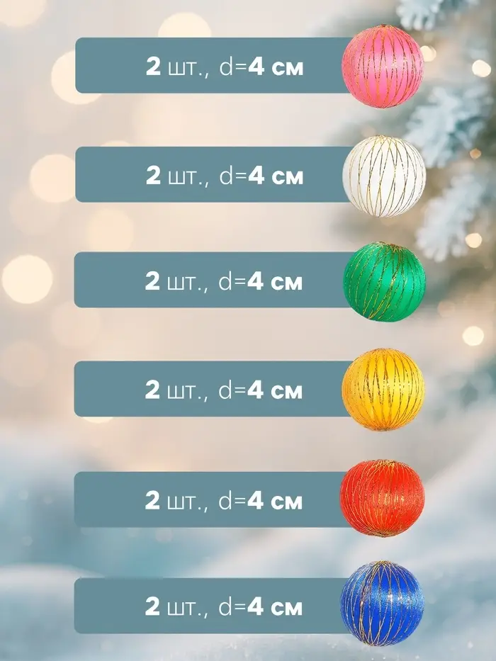 Ёлочные игрушки «Золотая нить», шары новогодние, d=4 см, набор 6 шт., МИКС