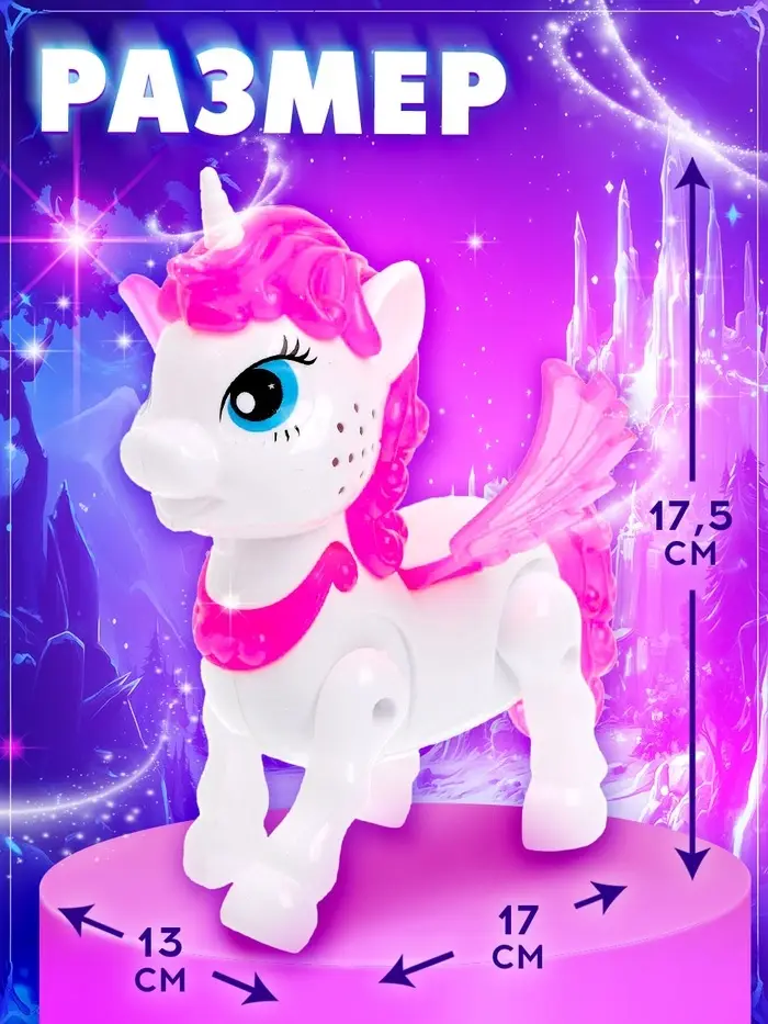 Музыкальная игрушка «Любимый единорог» – это очаровательный друг для маленьких принцесс, который не только ходит, но и светится, издавая мелодичные звуки. Эта игрушка станет настоящим сокровищем для девочек от 3 лет, подарив им часы веселья и волшебства.