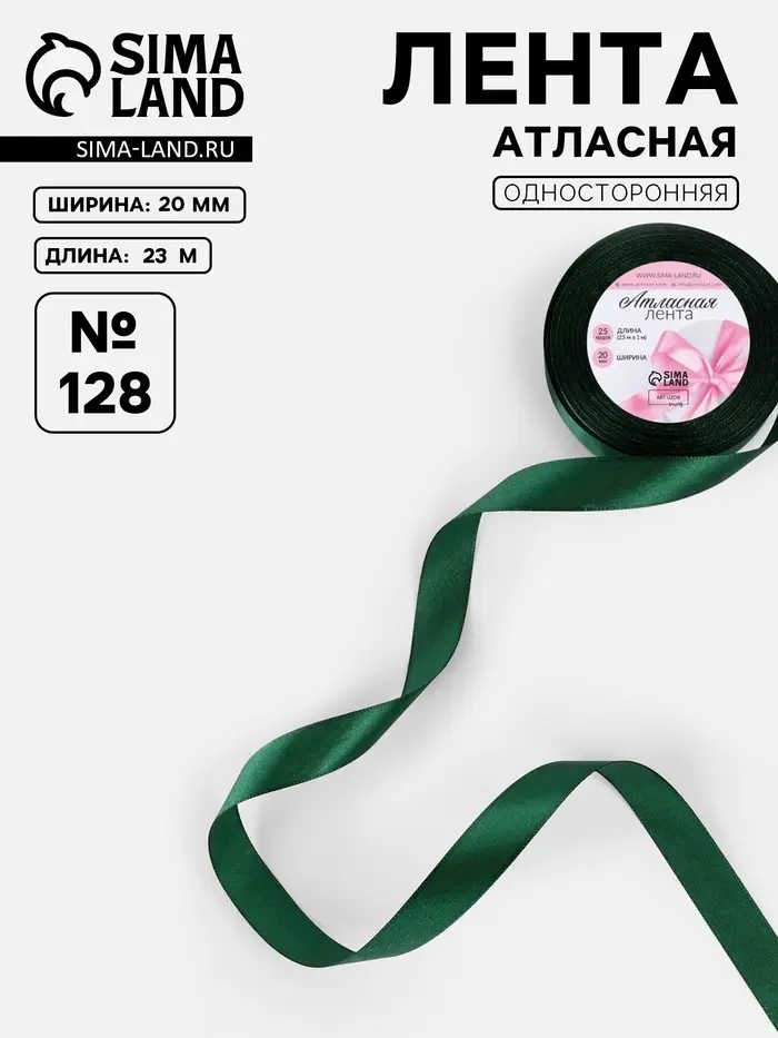 Лента атласная, 20 мм, 23±1 м, тёмно-зелёная №128
