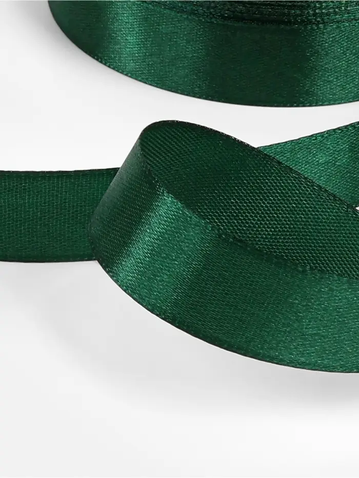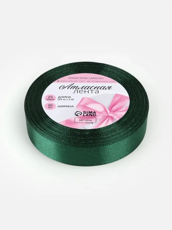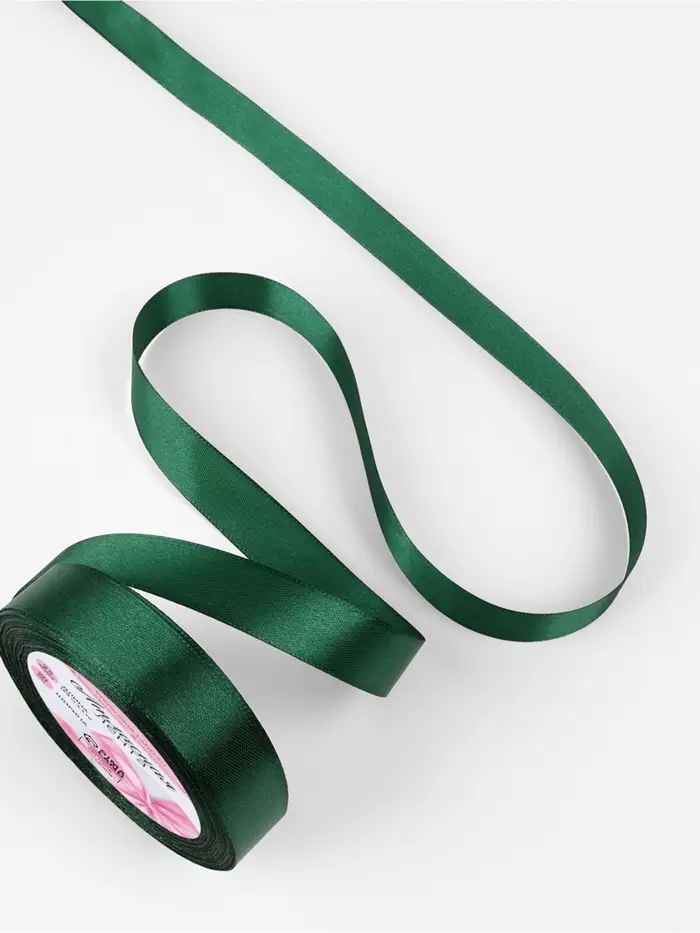 Тёмно-зелёная атласная лента шириной 20 мм — универсальный аксессуар для упаковки, декора и творчества. Полиэстеровый материал сохраняет форму, не осыпается при нарезке и подходит для многоразового использования. Длина 23 метра — удобный запас для крупных проектов и мелкого ремонта.