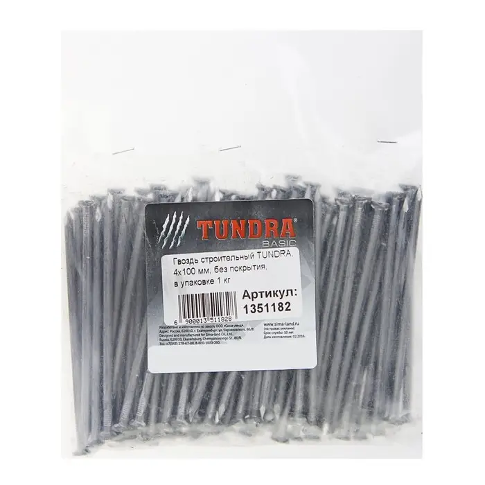 Гвозди ТУНДРА, строительные, ГОСТ 4028-63, без покрытия, 4×100 мм, фасовка 1 кг