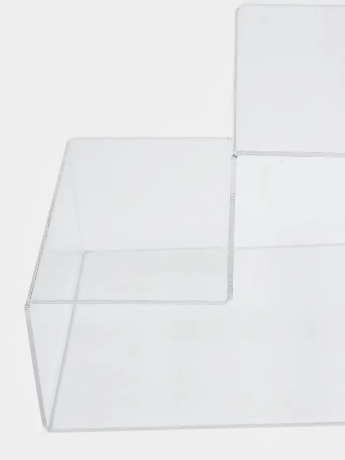 Две ступени высотой по 7 см каждая создают удобную многоуровневую поверхность, которая выгодно выделяет каждый экспонат, обеспечивая отличную обзорность и лёгкий доступ. Материал отличается высокой прозрачностью и прочностью, что делает подставку не только эстетичной, но и надёжной в эксплуатации.