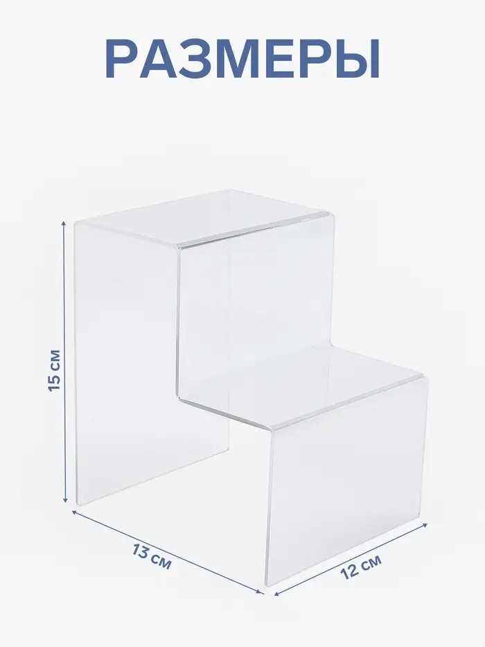 Прозрачная подставка-горка с двумя ступенями из оргстекла толщиной 2 мм — идеальное решение для эффектной и аккуратной презентации товаров, коллекций или декоративных элементов. Размеры 12×13×15 см обеспечивают оптимальное сочетание компактности и вместительности, позволяя максимально использовать пространство витрины или стола.