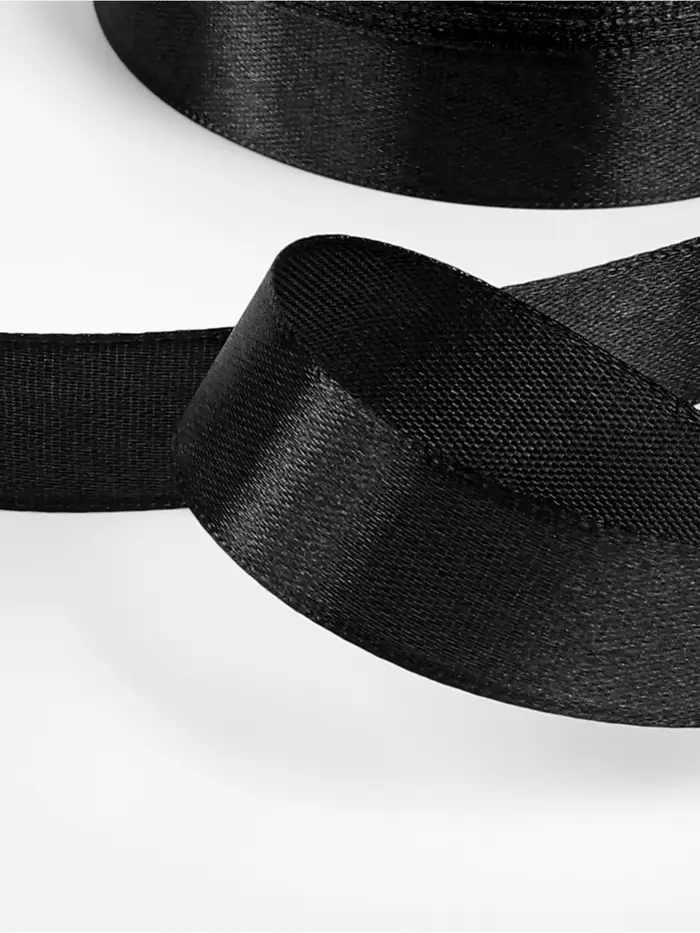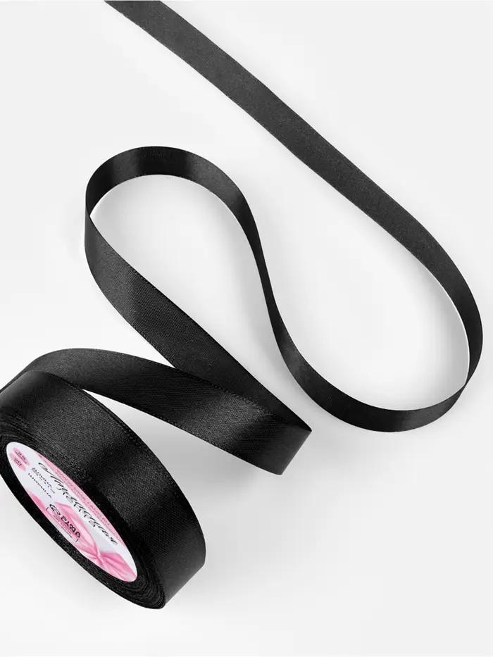 Прочная и элегантная чёрная атласная лента станет незаменимым элементом для всех ваших творческих проектов. С её помощью вы сможете добавить утончённости и изысканности, будь то упаковка подарков или создание декоративных элементов. Её универсальная ширина и длина обеспечивают удобство работы для любых дизайнерских решений.