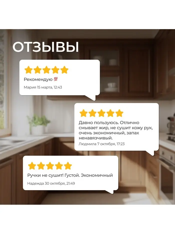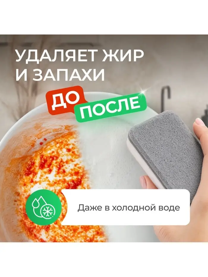 Мягкие биоразлагаемые тензиды из растительного масла обеспечивают хорошее пенообразование и эффективно удаляют жир и запахи даже в холодной воде. Растительный глицерин в составе средства защищает кожу рук от сухости и раздражения. Гипоаллергенная парфюмерная композиция с эфирными маслами аира, гальбанума, мяты, шалфея, лемонграсса и муската придает средству нежный и приятный аромат.