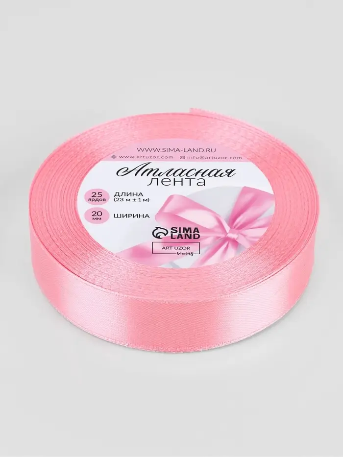Лента атласная, 20 мм, 23±1 м, нежно-розовая